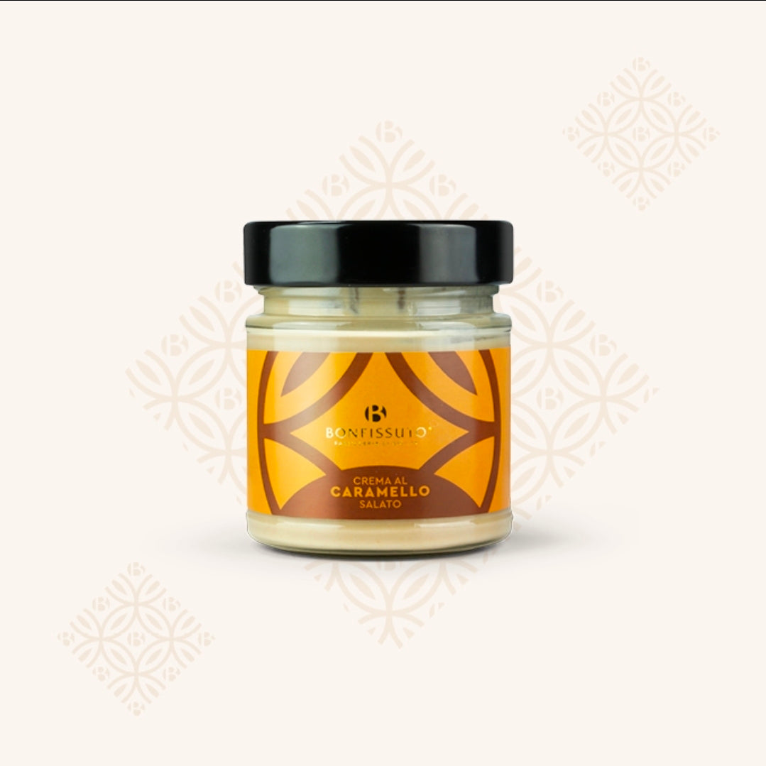 Bonfissuto almond cream , obtained with a base of high quality white chocolate and a mix of the best almonds.